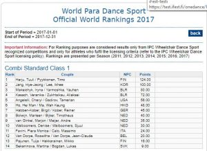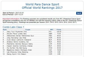 (kuvakaappaukset sivulta https://www.paralympic.org/world-rankings/wheelchair-dance-sport)